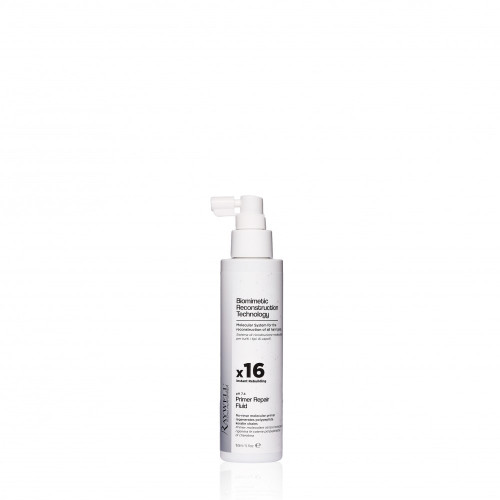 X16 Primer Repair Fluid to molekularny podkład bez spłukiwania stosowany przed zabiegami: ułatwia penetrację kolejnych produktów i chroni włosy podczas aplikacji. Wzbogacony o aminopeptydy, hydrolizowane proteiny pszenicy i jedwabiu, które wspomagają regenerację łańcuchów polipeptydowych keratyny na poziomie molekularnym, poprawiając sprężystość, odporność i połysk. Rozpylać na włosy przed krokami odbudowującymi (np. X17).